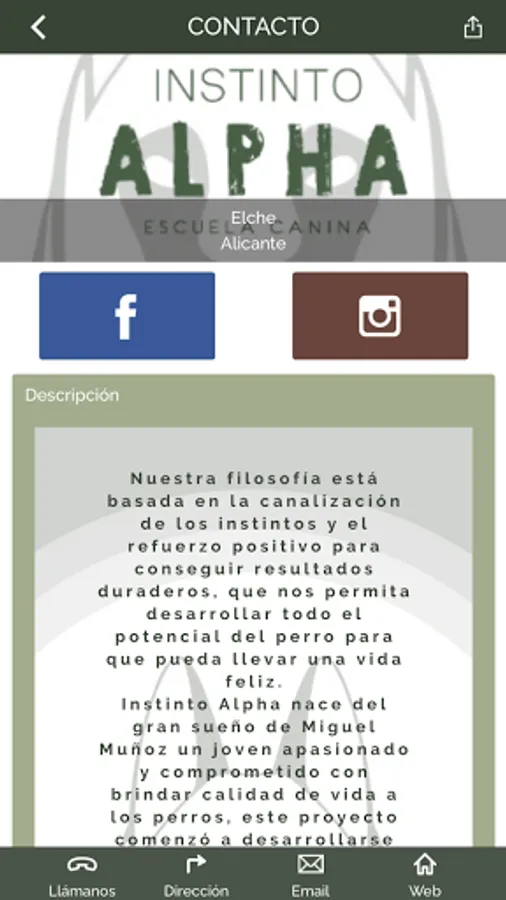 Instinto Alpha was born from the great dream of Miguel Muñoz, a passionate young man committed to providing quality of life to dogs, this project began to develop while he was in Madrid working and acquiring knowledge in training, he discovered that he wanted to do things differently , turn the world of education and entertainment for dogs upside down.