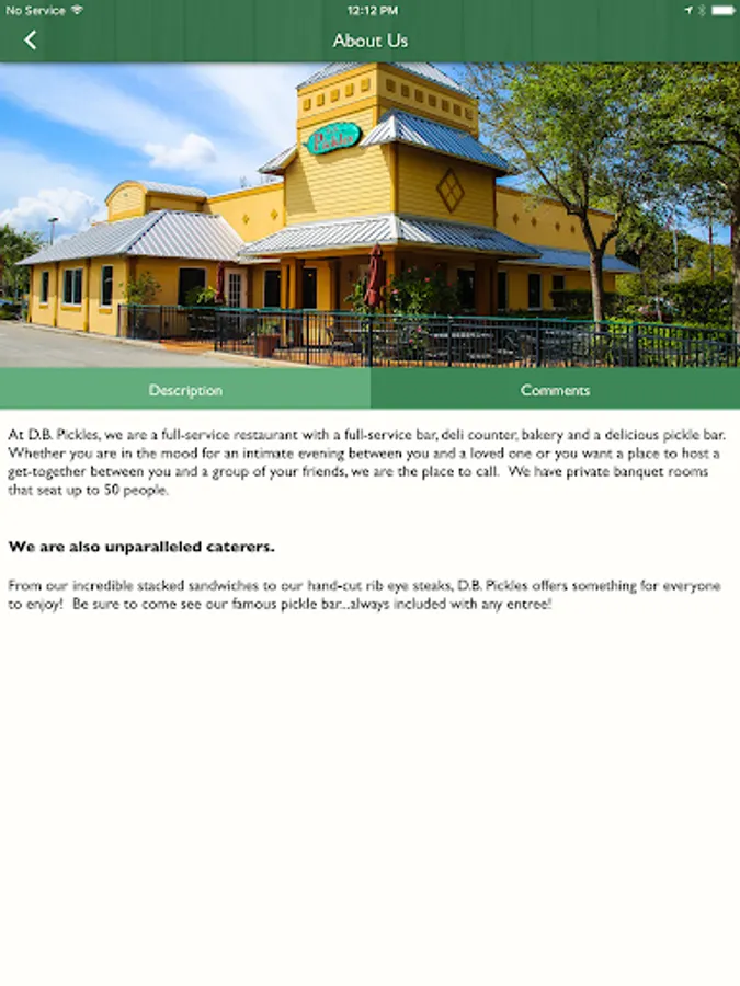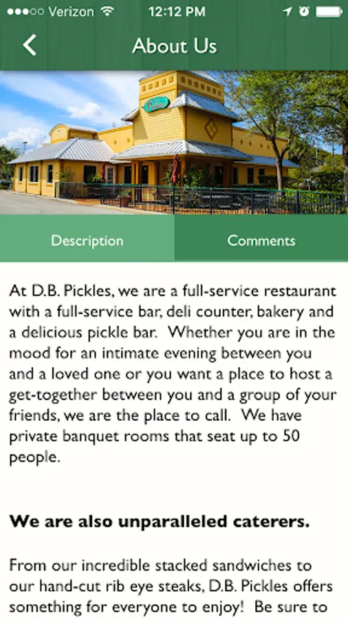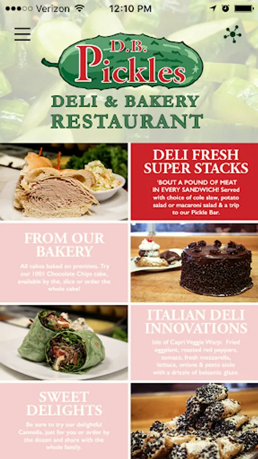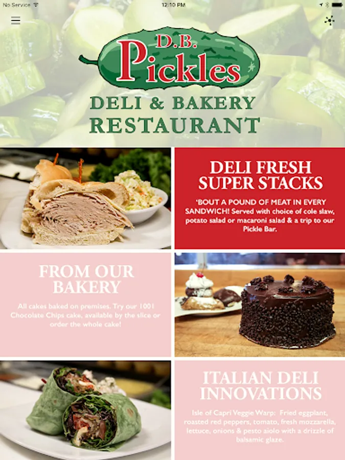 The D.B. Pickles app allows you to connect with this full-service restaurant with a bar, deli counter, bakery and delicious pickle bar. Contact us with east, earn loyalty points, view our menus and specials, calculate your tip & more with just a few taps of the app!