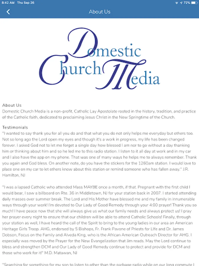 The Domestic Church Media mobile app is packed with features to help you listen, pray, learn, and interact with DCM community.