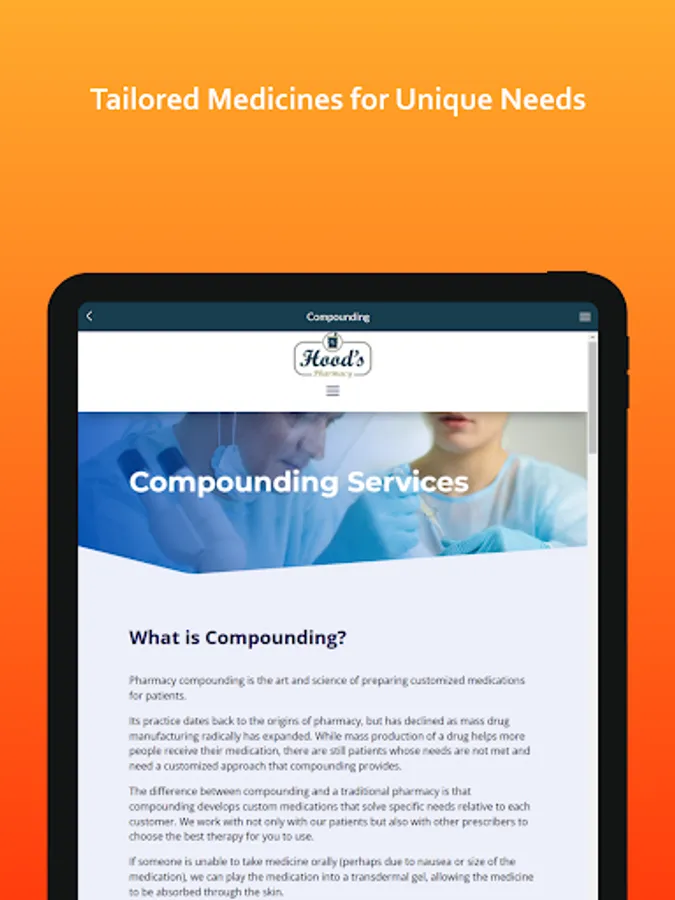 Hood’s Specialty Compounding Pharmacy has been a family owned community pharmacy for over 40 years. Hood’s Pharmacy has recognized an increased need by practitioners to more personally customize the drug therapy of their patients. To meet these needs, we continue to work together with physicians, dentists, veterinarians and other health professionals to meet the individual needs of every patient. Our compounding pharmacists can provide many unique services that will make it easy for patients to take their medicine.