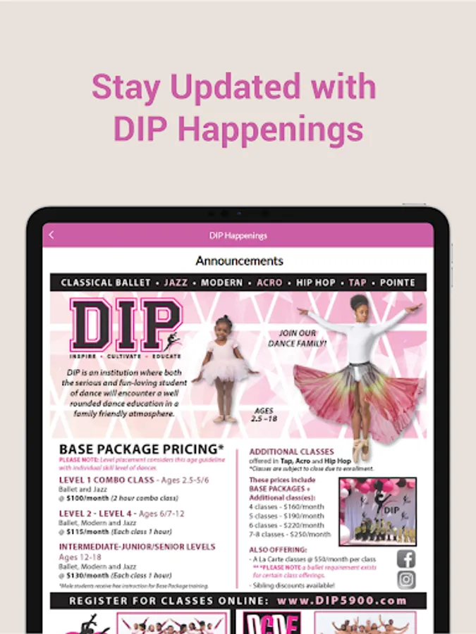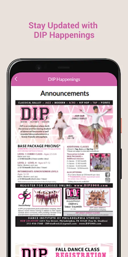 DIP (Dance Institute of Philadelphia) is located in the historic section of Germantown in Philadelphia, PA. Our dance school provides quality dance training through 3 main programs: DIP - the main dance school, DanceInPhinity! - our pre-professional Youth Performance Company and DCDE - DanceInPhinity's Children's Dance Ensemble.