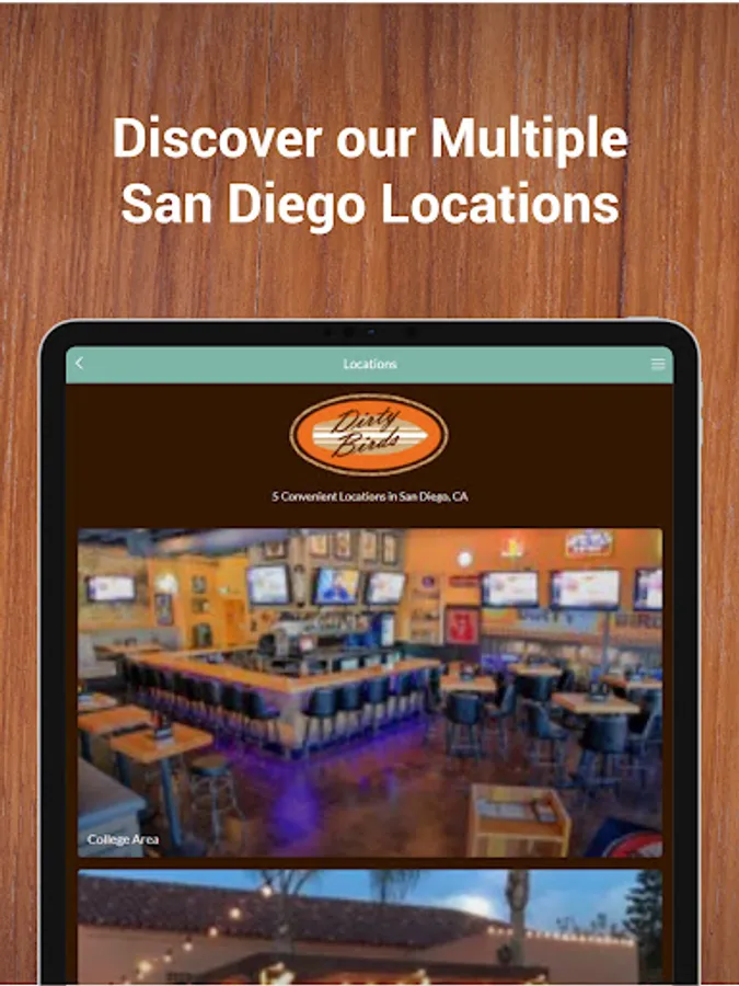 Dirty Birds first opened it's doors in Pacific Beach, San Diego in 2008. Since opening, it has become a staple in San Diego as the place to go if you want really good chicken wings. Voted Best Wings in San Diego 3 years running, in a poll by City Beat Magazine, and named Top Ten Wings in America by the Daily Meal & Yahoo Sports! With over 30 flavors, Dirty Birds has something for everyone to love! The menu also features burgers, sandwiches, salads, appetizers, and dessert. There are 14 TV's to watch your favorite sporting events, 10 local, seasonally rotatiing beer taps, a terrific selection of craft beer bottles, and an endless amounts of cocktails & wine. Check out our multiple locations right from our mobile app with online ordering, contact info, GPS directions, menus and more.