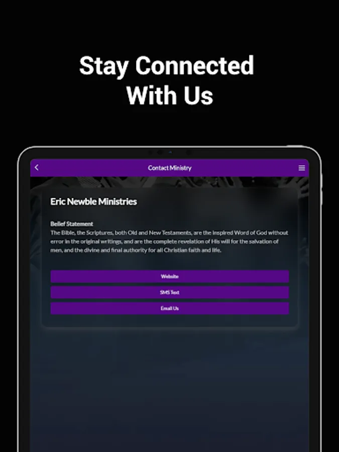 • Push Notification Messaging - receive messages containing important church information while on the go.