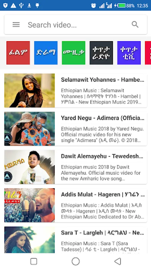 Watch Ethiopian Amharic, Oromo & Tigrigna Music Videos Clips, Ethiopian dramas, amharic film and Ethiopia Tv shows. There is also Live Ethiopian television programss and Liver radio programs.
