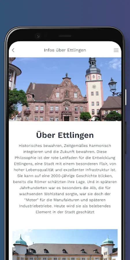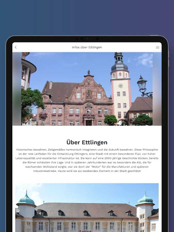 Ettlingen for your pocket. The user has all information about the city always there. From the latest news about current events, push messages to the most important numbers of the emergency services.