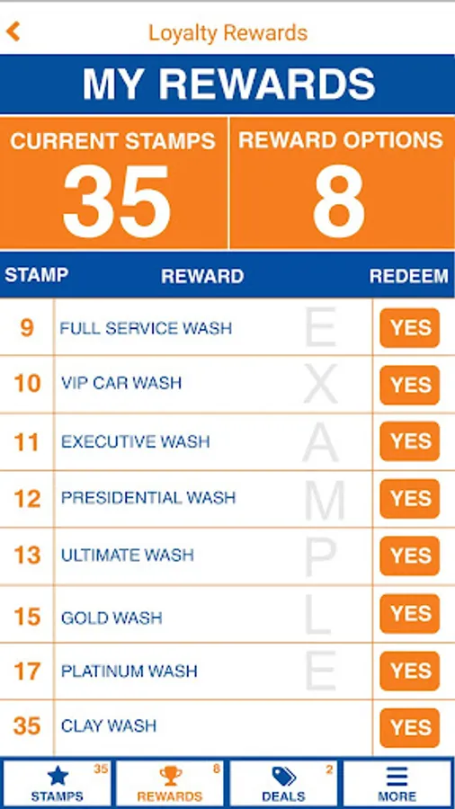 • LOYALTY REWARDS PROGRAM. Executive Car Wash Loyalty Rewards Members simply open their loyalty account on our app and start earning stamps each time they make a purchase at our car wash. These stamps are then redeemable for rewards.