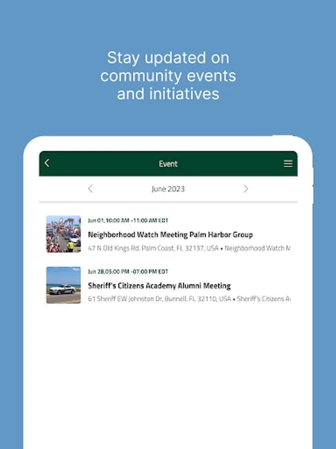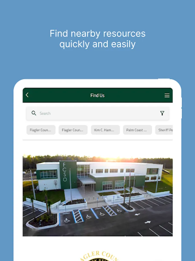 The Flagler County sheriffs Office App is your personal resource for safety and security in Flagler County. Enable push notifications to receive up to the minute alerts on traffic and problem areas in your community. Avoid high traffic areas and be alerted to crimes as they happen. Additionally, we have provided GPS directions to Emergency and health services to help you get to the destination you need hands-free.