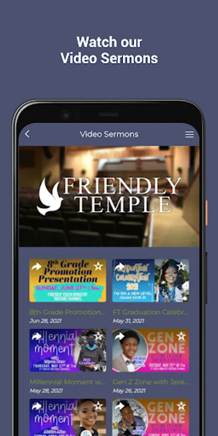 Our Senior Pastor is Rev. Michael F. Jones, Sr. who serves with excellence and integrity as both a spiritual and community leader in St. Louis, MO. For more information about Friendly Temple Church we invite you to download our app and to visit our website, http://www.friendlytemple.org/.