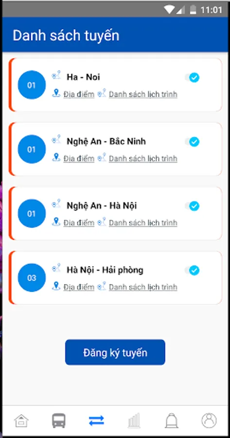 Manage the list of routes: Manage the running routes, regular boarding and exit points of the route