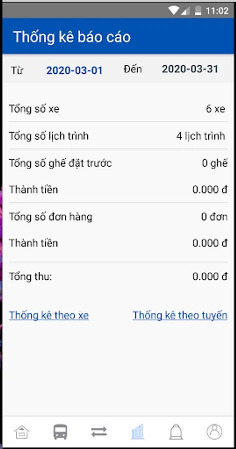 Statistics report: statistics of garage sales, vehicle sales, routes, and schedules