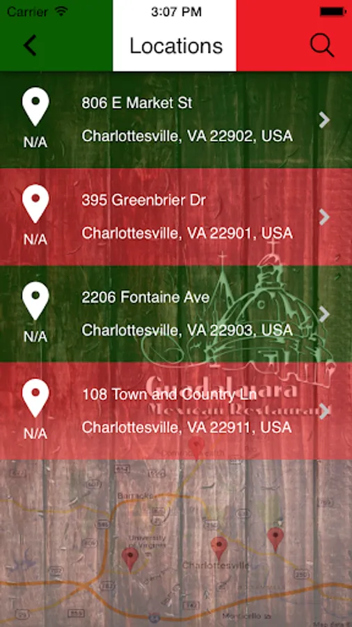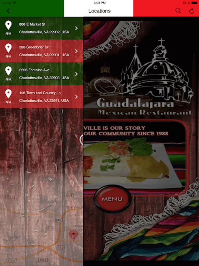 Guadalajara menu features specialties, including sizzling fajitas, hand-made tamales, enchiladas and tacos as well as combination platters. Salads and soups are also available. Guadalajara offers a wide selection of Margaritas, in addition to a complete list of beers and cocktails.