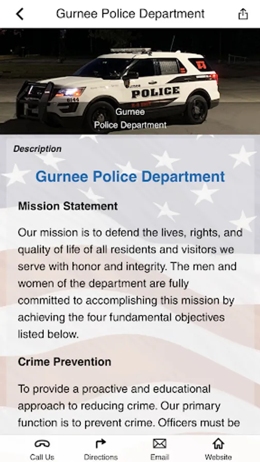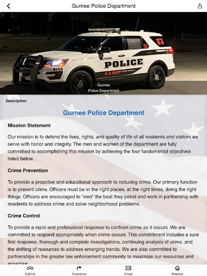 On behalf of the men and women of the Gurnee Police Department, welcome to our app. This app is for the employees and family members of the Gurnee Police Department as well as the community it serves. It contains information about our department as well as safety and crime prevention tips. Gurnee Police Department employees will have access to a full range of wellness tools.