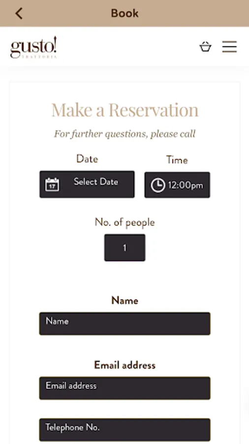 Welcome to the Gusto Trattoria app, where you can order and pay for your favourites and make table reservations.