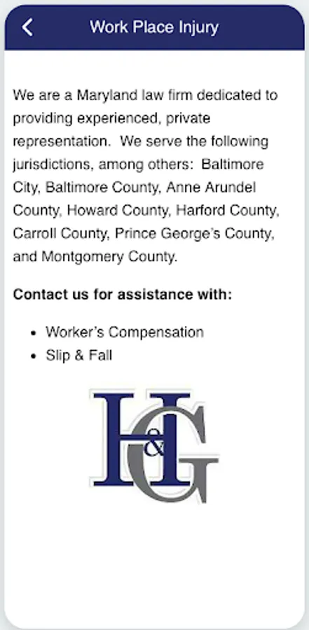 Hyatt & Goldbloom, LLC offers legal counseling and representation in the following areas: personal injury, criminal defense, workers’ compensation and medical malpractice. Based in Baltimore, Maryland.