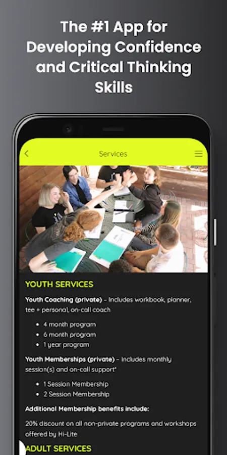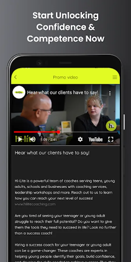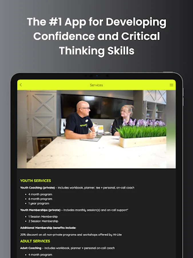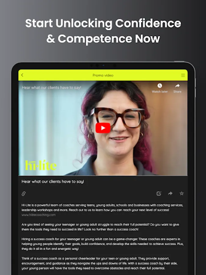 If you’re looking to improve confidence and critical thinking skills, The Hi-Lite™ Coaching + Consulting app is for you. Gain access to quality coaching, tools and opportunities that help youth develop into their best, most confident, competent self. Hi-Lite™ Coaching + Consulting is well-known for its “Empower. Transform. Achieve.” ™ coaching program that is designed to bring awareness to who you are, where you want to go, and connect the dots in between with active goal setting and future self-design.