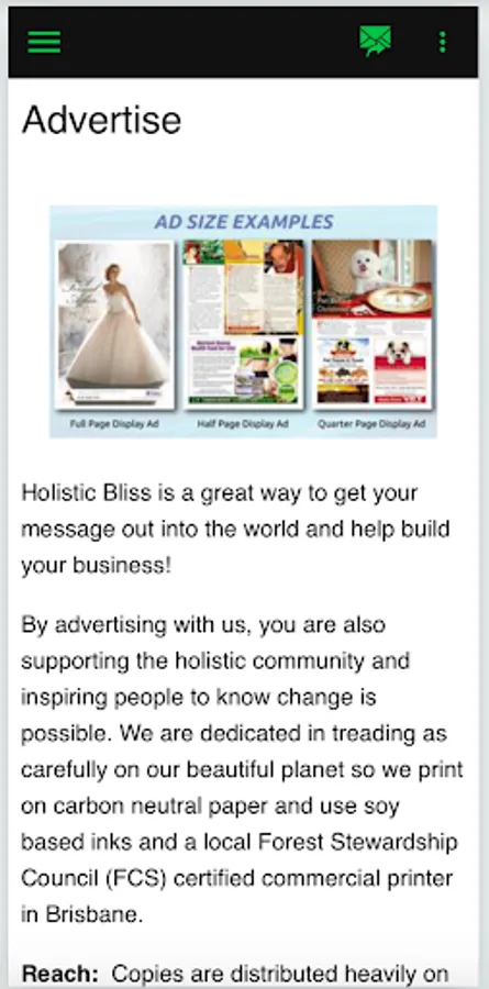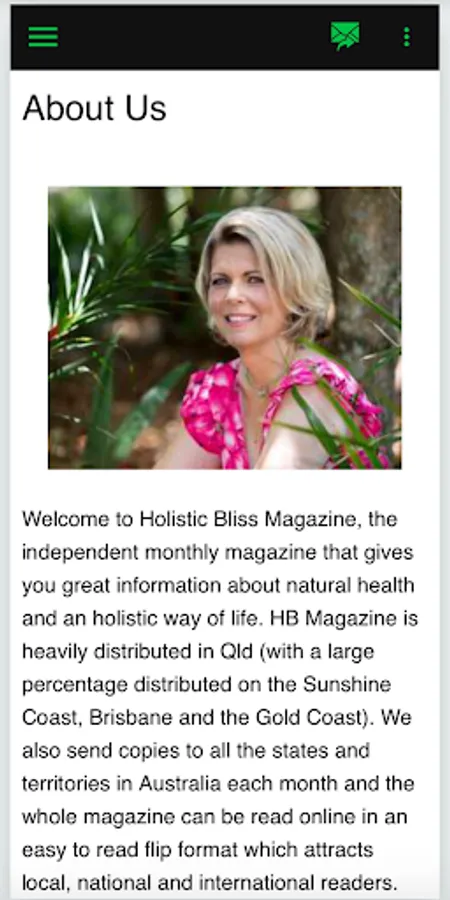 Holistic Bliss Magazine is an independent monthly magazine that gives a great information about natural health and an holistic way of life. HB Magazine is heavily distributed in Qld (with a large percentage distributed on the Sunshine Coast, Brisbane and the Gold Coast). We also send copies to all the states and territories in Australia each month and the whole magazine can be read online in an easy to read flip format which attracts local, national and international readers.