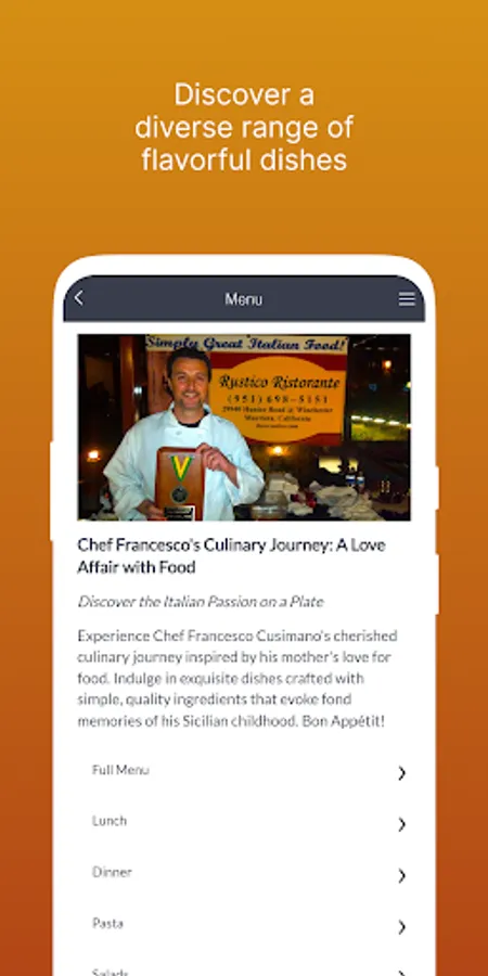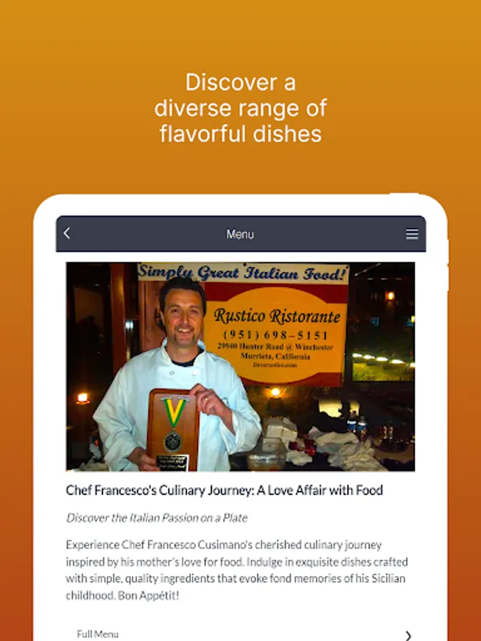 Don't miss out on any of the delightful dishes Rustico has to offer. Download our app now and embark on a culinary journey through Italy, right in the heart of Murrieta. Buon Appetito!