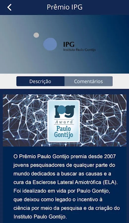Welcome to the IPG - Instituto Paulo Gontijo app, which will keep you informed about ALS - Amyotrophic Lateral Sclerosis (diagnosis that forever changes the lives of everyone affected by it, be it patients, family, friends or caregivers), and about the work of the Paulo Gontijo Institute, which promotes scientific research and knowledge about ALS diagnosis, as well as develops awareness and humanization actions that contribute to better care for professionals, patients and their families.