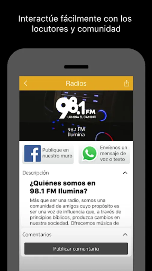 El app oficial de la Comunidad Virtual de las radios 98.1 FM Ilumina, 99.7 FM El Camino y Celebra FM, transmitiendo desde la ciudad de Guatemala, Centro América.