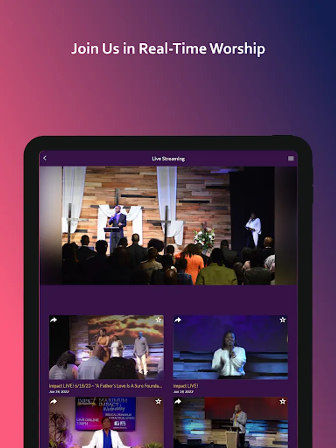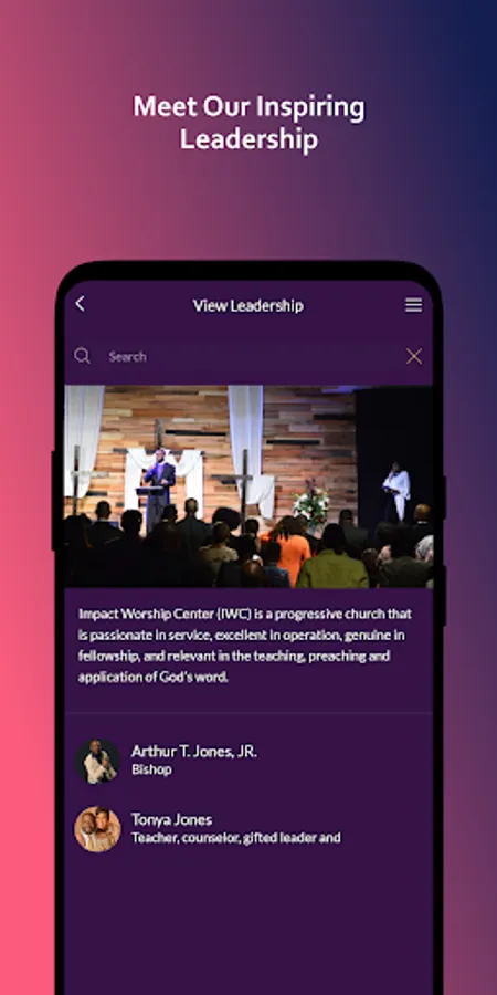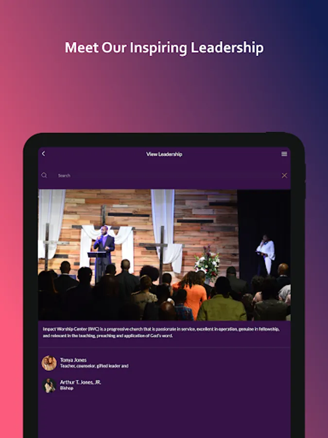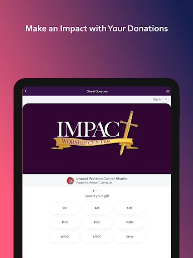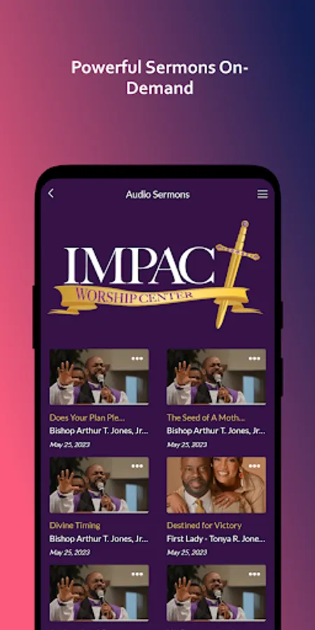 The Impact Worship Center App features content from our Bishop Arthur T. Jones Jr, who leads Impact Worship Center in Mableton, Georgia. Downloading this free app will give you access to stay connected with Impact Worship Center in the palm of your hand.
