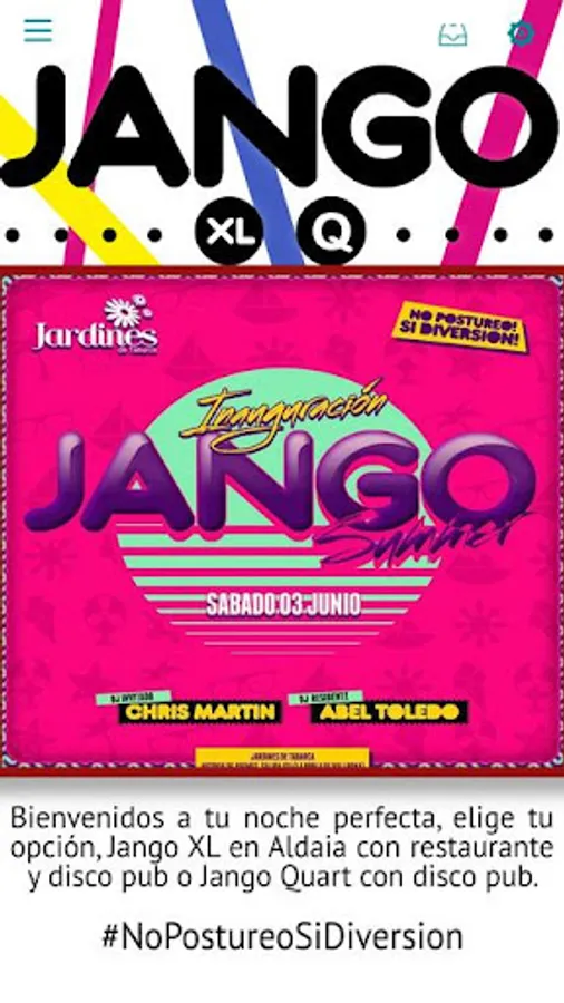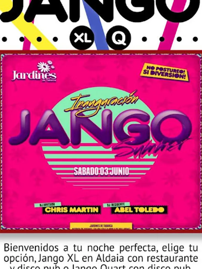 Live your perfect night in Jango XL! Begins with a delicious dinner with open bar and dancing the night continues until dawn in the company of the best atmosphere and the best parties and DJs of the moment. Do not hesitate, your perfect nights in Aldaia.