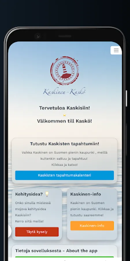 This free Kaskinen application brings current information about the city's events, services and news to your phone in an easy-to-use way that effectively utilizes the device's features!