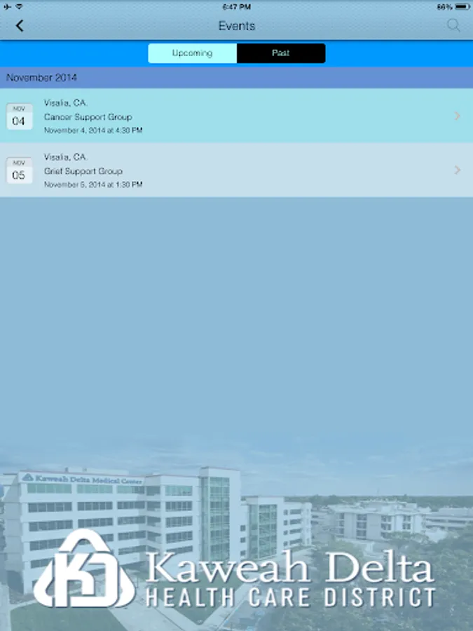 • Information on upcoming events, classes and support groups offered through Kaweah Delta Health Care District