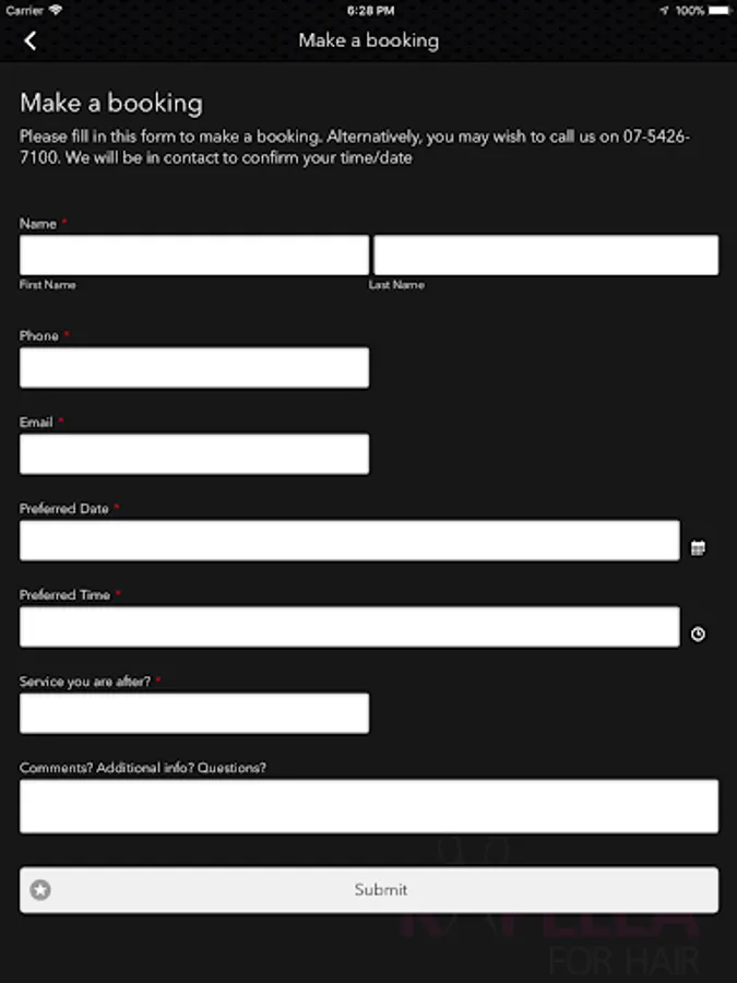 Download our free App to read more about us and our services, You can also make bookings or enquiries, claim loyalty rewards, track and attend our latest events of interest, submit a photo for styling and treatment recommendations, read and leave reviews.