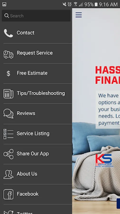 Download the brand new KS Services app to stay connected with us 24/7! With our app, you can request repair and maintenance services, get a free estimate for new installations, and get access to troubleshooting documents all from the palm of your hand. You can also leave reviews, connect to our social media profiles, or call us directly!
