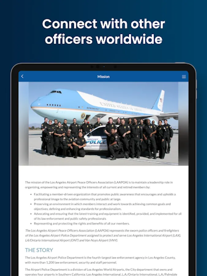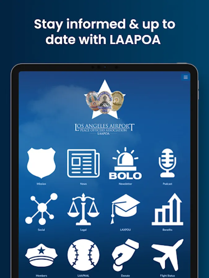 The Los Angeles Airport Peace Officers Association app keeps users at the forefront of public safety issues at home and abroad. The app also provides access to the latest LAAPOA news and press releases, the American Alliance of Airport Police Officers (AAAPO) press releases, and the latest issue of the BOLO Newsletter. The app enables members to stay up to date on union news, events, legal representation, benefits and more.