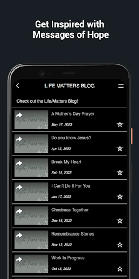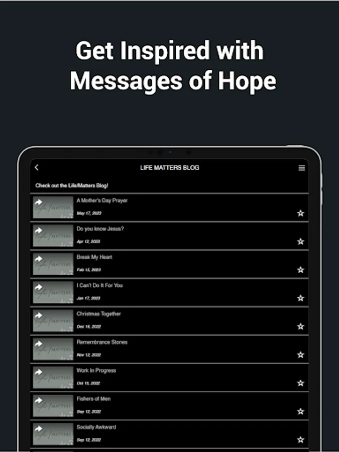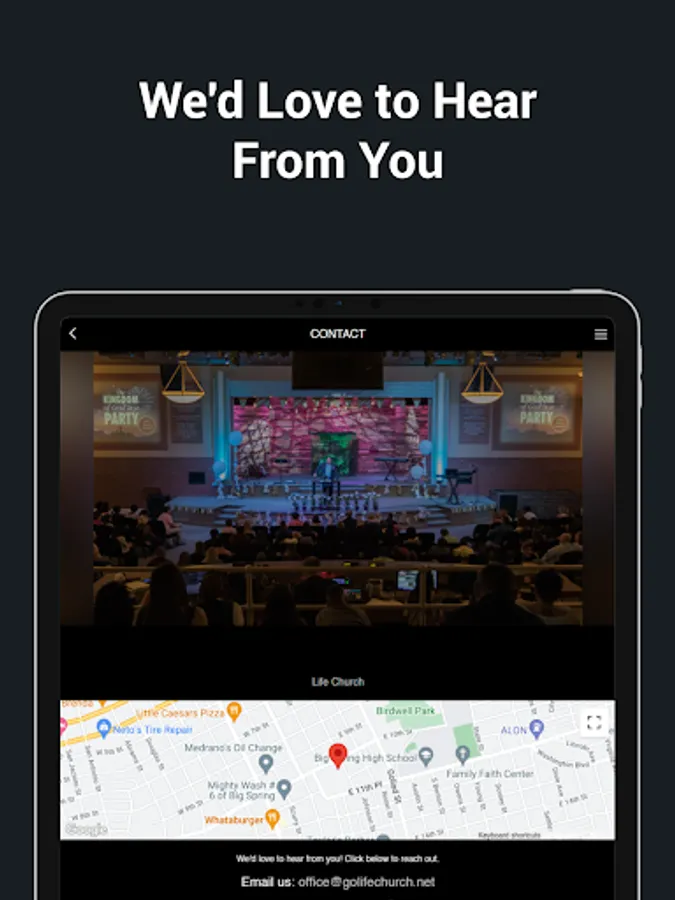 Welcome to our church app! Our mission at Life Church is to inspire and help people follow Jesus. This app provides access to life-changing video sermons, upcoming events, and more. Additionally, you can also share content with your friends via social media or messaging.