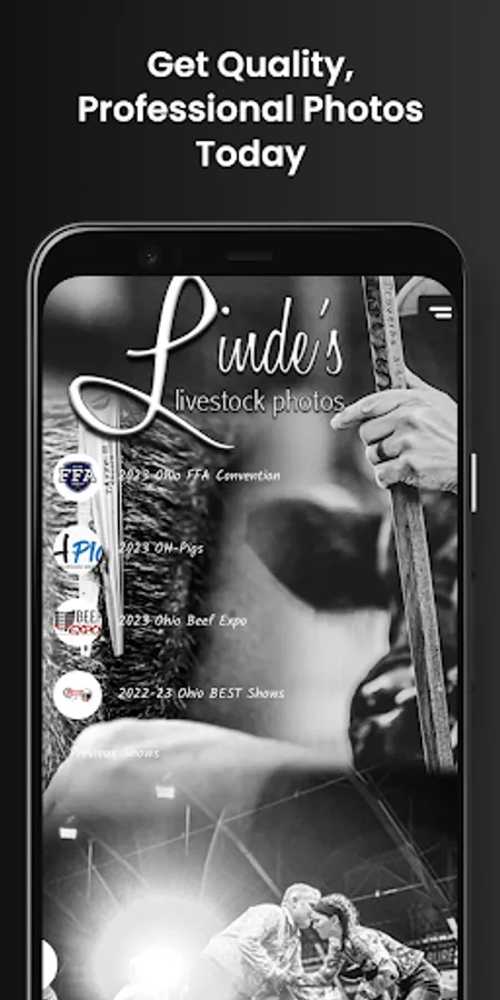 Linde's Photos now offers an app for your smartphone. The app is a simple way for your to connect to us and start viewing, sharing and ordering your photos on an easy-to-use, secure platform. We've included a Special Photo Request Form that allows you to request special show photos of your exhibitor in the ring. You can contact us, see our upcoming events, enjoy special promotions and receive loyalty rewards!