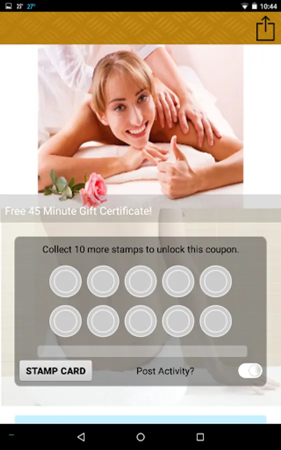 • Stamp the app’s electronic Loyalty Card to earn free massage, upgrades and