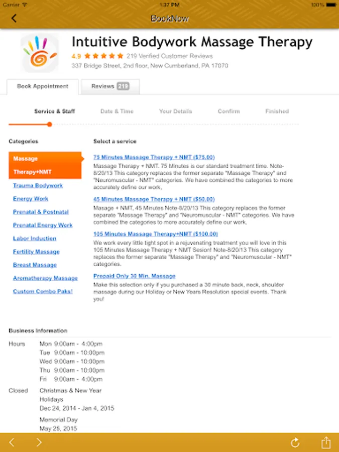 • Get app only massage & bodywork special deals, including 3 and 6 visit special
