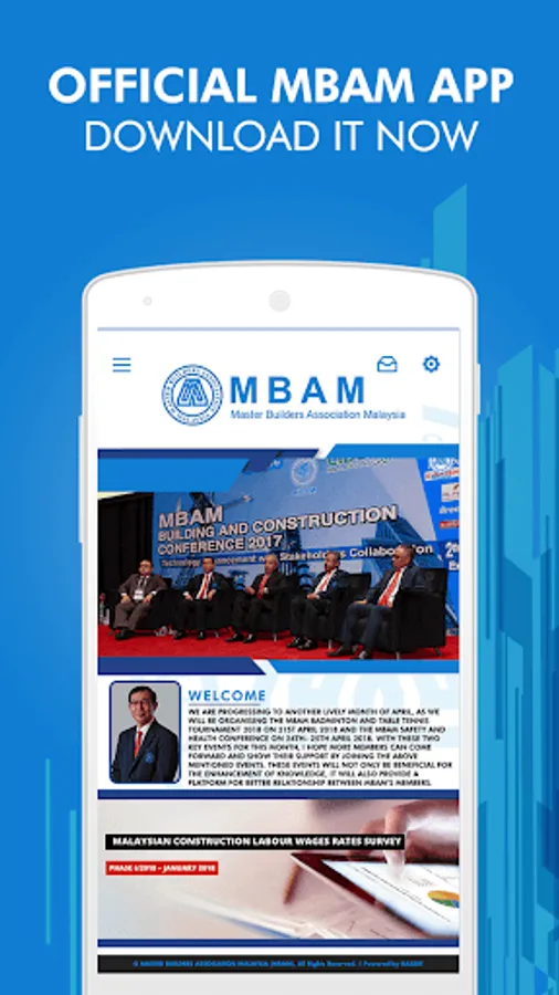 This of official Master Builders Association Malaysia (MBAM) mobile app to help users/members to get latest information, programs/events, publications, news, TV and many more.