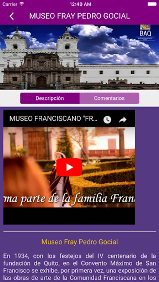 BAQ is available in the description and information Museum of Fine Arts in Quito, prices and contacts which will find pictures and videos of each museum, in addition to geographical location are routes to optimize travel time.