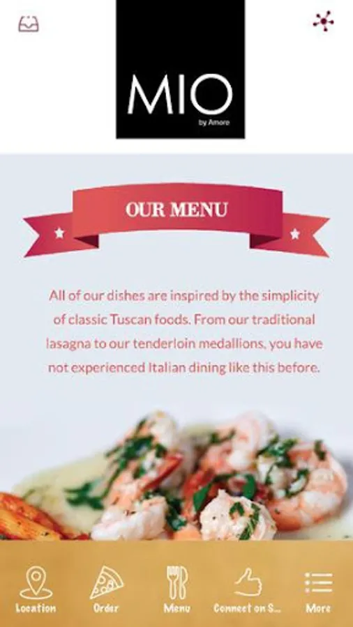 Formerly Cafe Amore, MIO Italian Kitchen & Vinoteca is a NEW menu, NEW look, NEW amore! With a rich history of working in a family-run restaurant and a passion for Italian fine-dining, we are happy to bring you MIO. We are still the familiar place you have always loved to come, just with an updated name and menu. Come experience all that is new, while taking comfort in our traditional Tuscan dishes. From the MIO family to yours, benvenuto!
