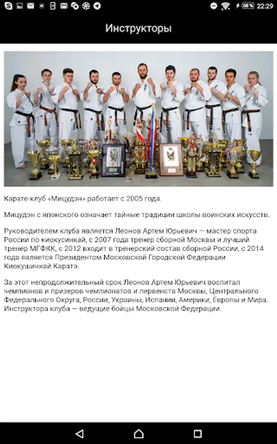 With the application you can always easily contact with trainers, choose a route to a certain audience, become a member, even if you are not a business.
