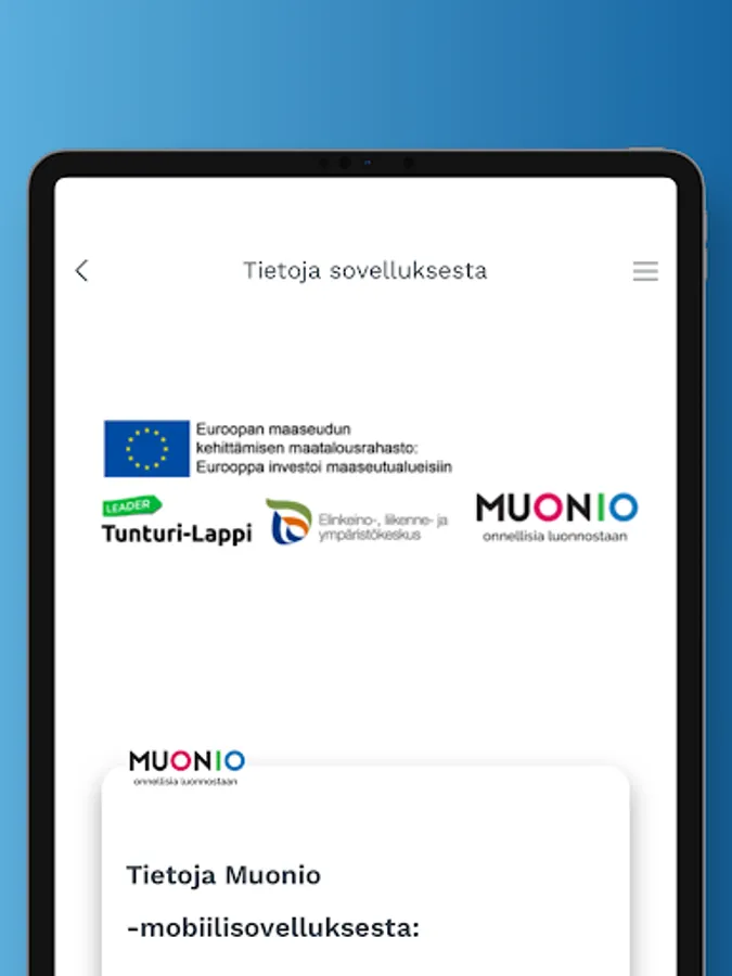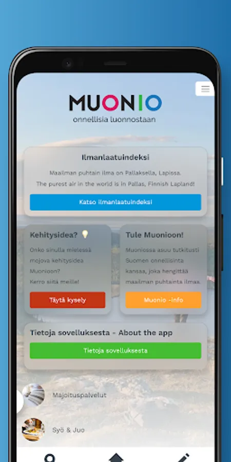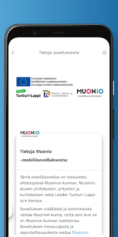 Muonio -mobiilisovellusta tullaan päivittämään jatkossa siten, että saat sen kautta aina ajankohtaiset tiedot ja uudet toiminnot käyttöösi!