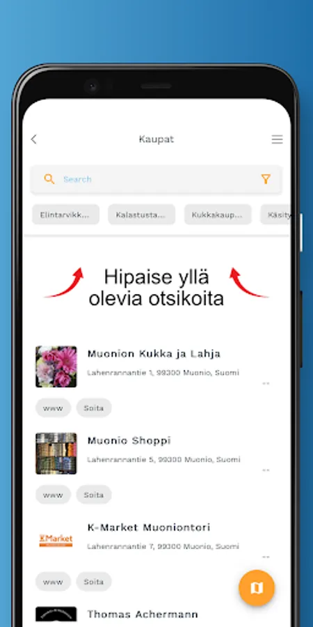 Sovelluksen avulla näet palveluiden sijainnit ja etäisyydet kartalla ja parilla hipaisulla voit aloittaa puhelun, sähköpostin tai navigoinnin haluamaasi kohteeseen. PUSH-viestit hyväksymällä voit myös vastaanottaa tiedotteita, viestejä ja rahanarvoisia tarjouksia!