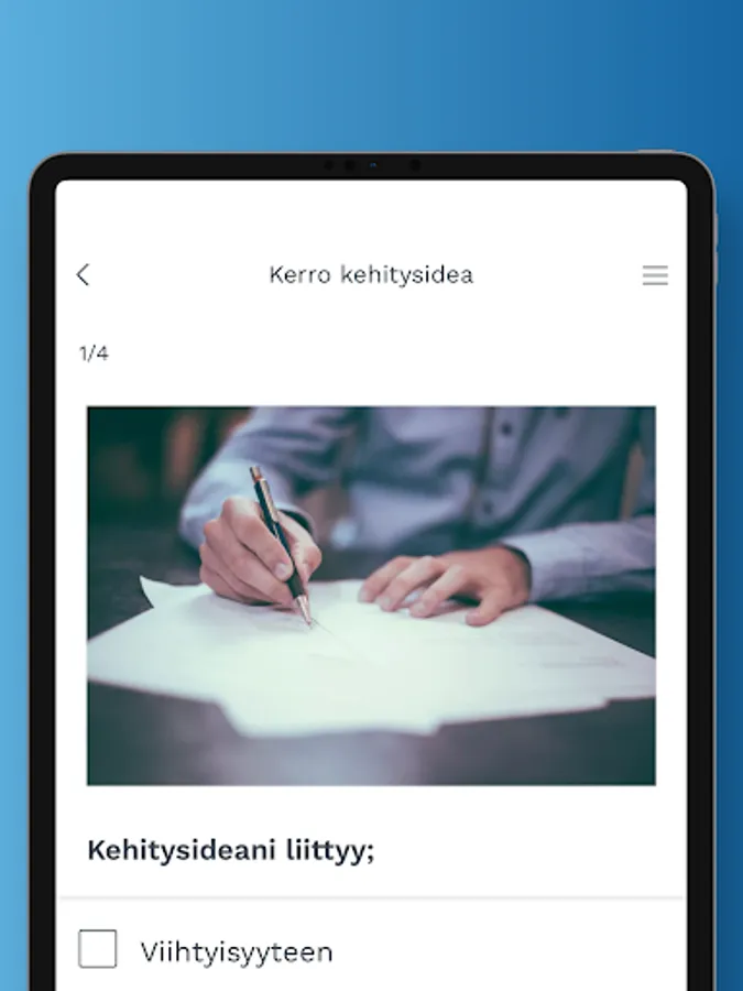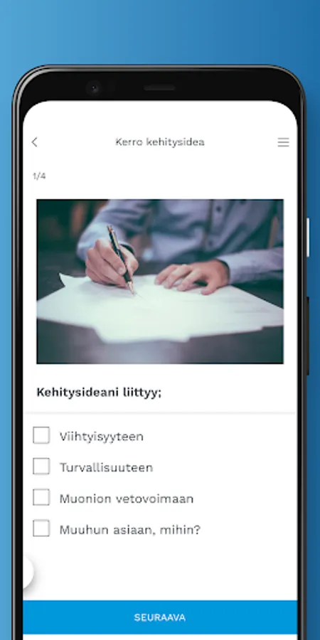 Sovelluksen käyttö on helppoa, sillä pääset liikkumaan pää- ja alavalikoissa vasemmassa yläkulmassa olevan tai puhelimen oman nuolinäppäimen avulla aina takaisin.
