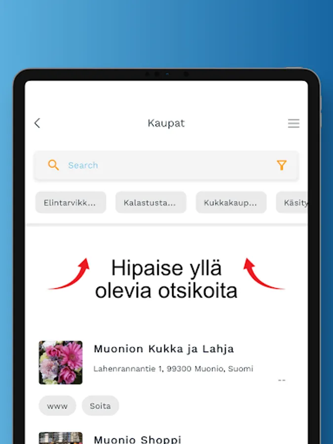 Tämä maksuton Muonio -sovellus tuo ajankohtaiset tiedot alueen tapahtumista, palveluista ja uutisista älypuhelimeesi ja tablettiisi helppokäyttöisellä ja älylaitteen ominaisuuksia tehokkaasti hyödyntävällä tavalla!