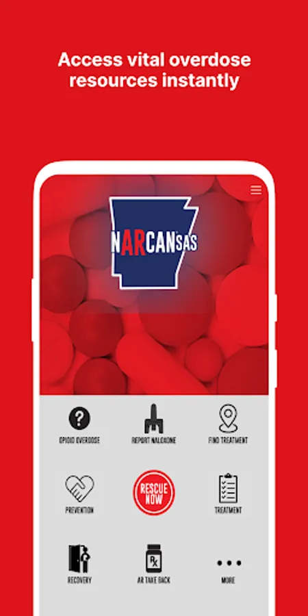 The NARCANsas app is a free opioid overdose resource containing resources, links, and tools that will help you administer the drug naloxone in the moment of an opioid overdose and provide steps on how to save a person’s life in the event of an opioid overdose.