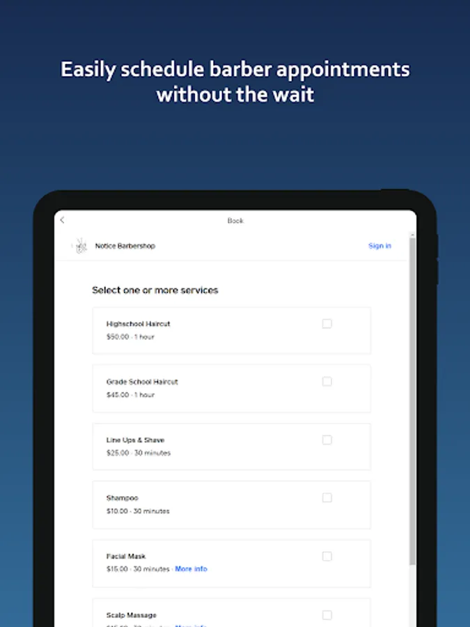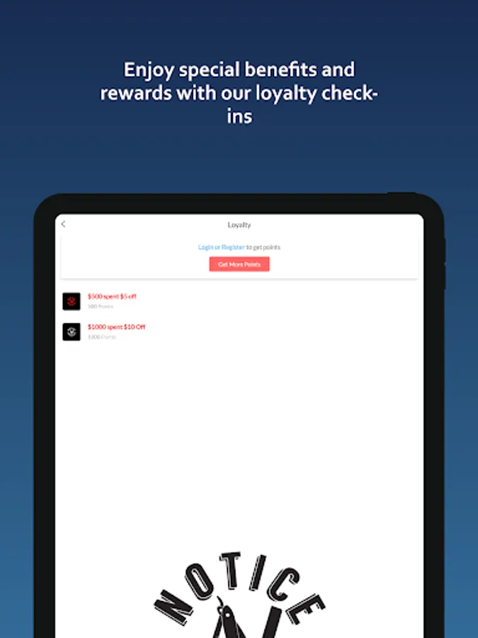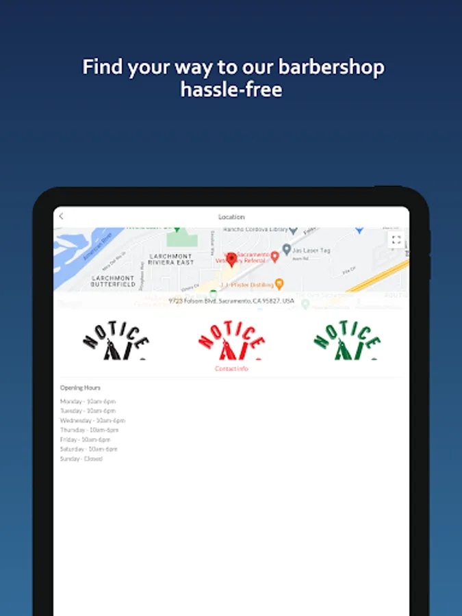 The all new Notice Barbershop App will allow customers to set appointments. Never wait on line again! This App also will allow you to get notifications regarding events, promotions and special announcements.