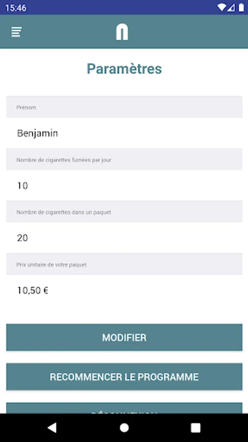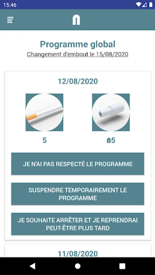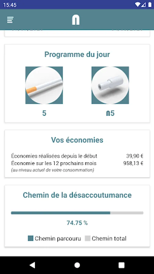 Each day the application, following a protocol developed by EMPS, will indicate the number of cigarettes that the smoker must not exceed during the day, as well as the mouthpiece to use. He will thus have an overall visualization of the program, its progress and the savings made.
