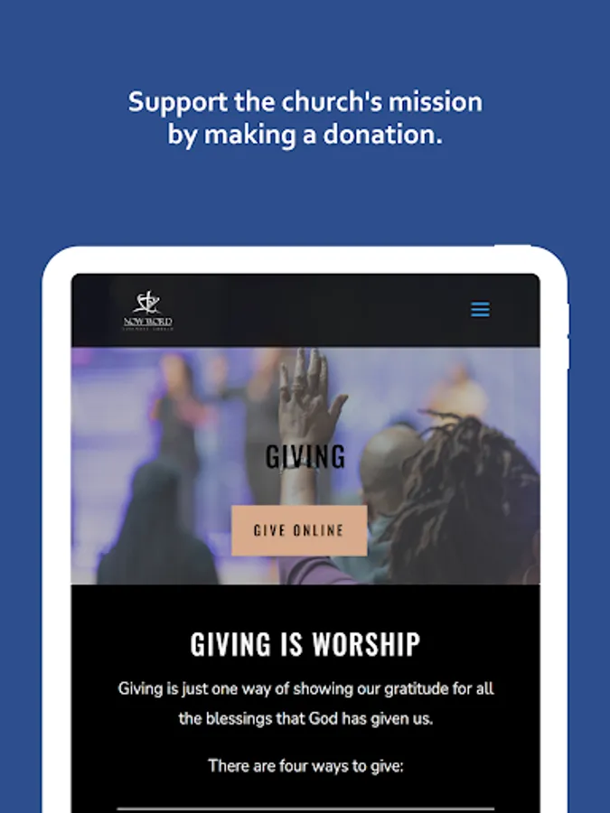 • Push Notification Messaging - receive messages containing important church information while on the go.
