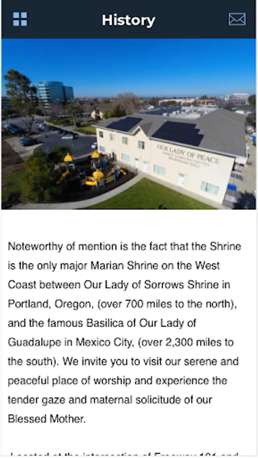 The Our Lady of Peace (OLP) Shrine and Catholic Church in Santa Clara, CA mobile app is packed with features to help you pray, learn, and interact with the Catholic community.
