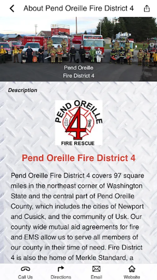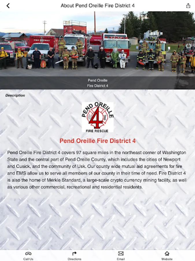 Pend Oreille Fire District 4 covers 97 square miles in the northeast corner of Washington State and the central part of Pend Oreille County, which includes the cities of Newport and Cusick, and the community of Usk. Our county wide mutual aid agreements for fire and EMS allow us to serve all members of our county in their time of need. Fire District 4 is also the home of Merkle Standard, a large-scale crypto currency mining facility, as well as various other commercial, recreational, and residential residents.
