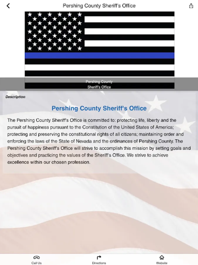 This app is for the employees of the Pershing County Sheriff's Office, their families, and the community they serve. This app contains information about the Office as well as safety and crime prevention tips. Pershing County Sheriff's Office employees and their families will have access to a full range of wellness tools.