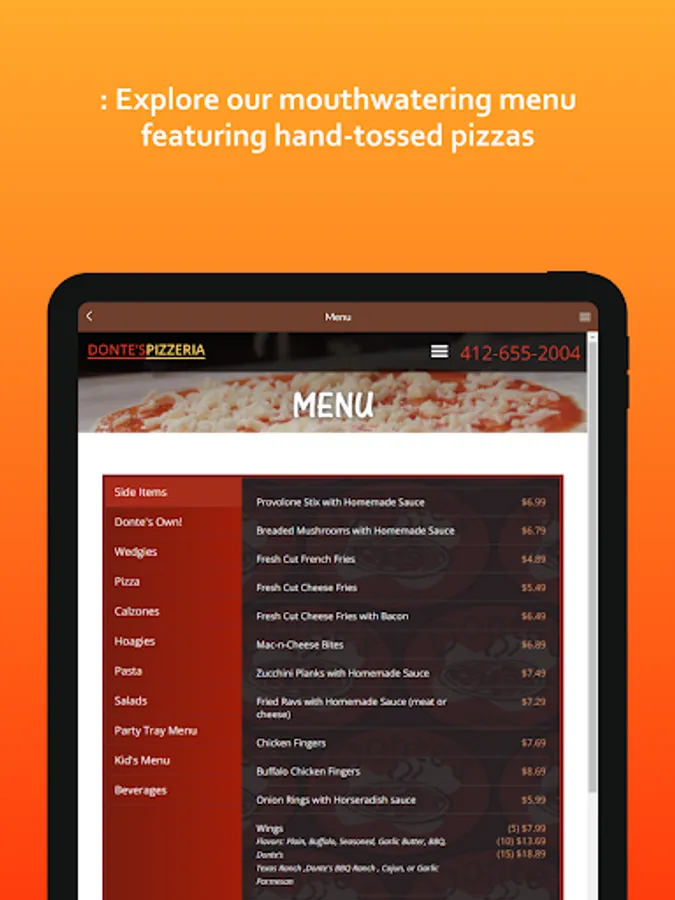 The ingredients are from local vendors in the Pittsburgh area. The pizza dough is hand-tossed, and the cheeses grated on a daily basis for the freshest taste. Meatballs are made from scratch and are delicious alone or over pasta!